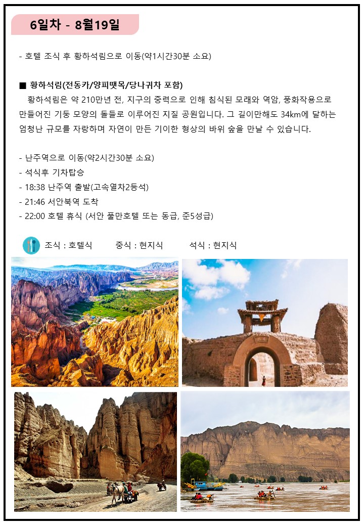 - 호텔 조식 후 황하석림으로 이동(약1시간30분 소요)