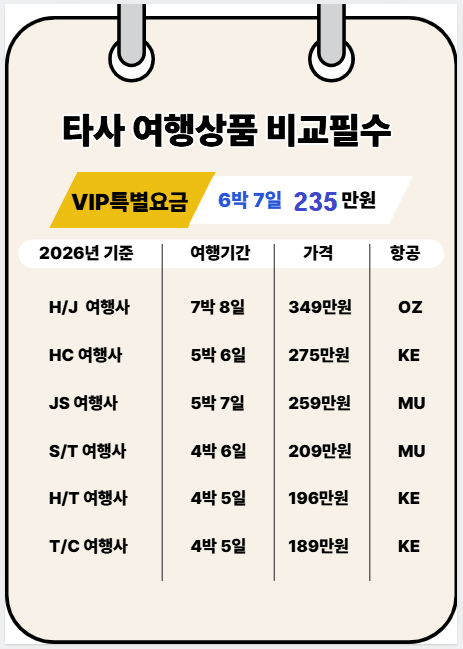 | 비 자 | 비자발급 대상 국가을 여행하실 경우 출국전 비자을 받아주시기 바랍니다. | ||||||||||||||||||