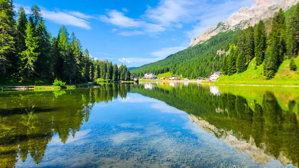 ■모시고 호수 트레킹 ■ 모시고 호수(Lago di Mosigo)는 돌로미티 산맥 San Vito di Cadore 마을 근처의 아담한 호수로, 맑은 수면에 Pelmo·Antelao 산봉우리와 숲이 비치는 풍경이 인상적입니다. 계절마다 다른 매력을 보여주며, 고요하고 평화로운 분위기 속에서 산책과 휴식을 즐기기 좋은 장소입니다.