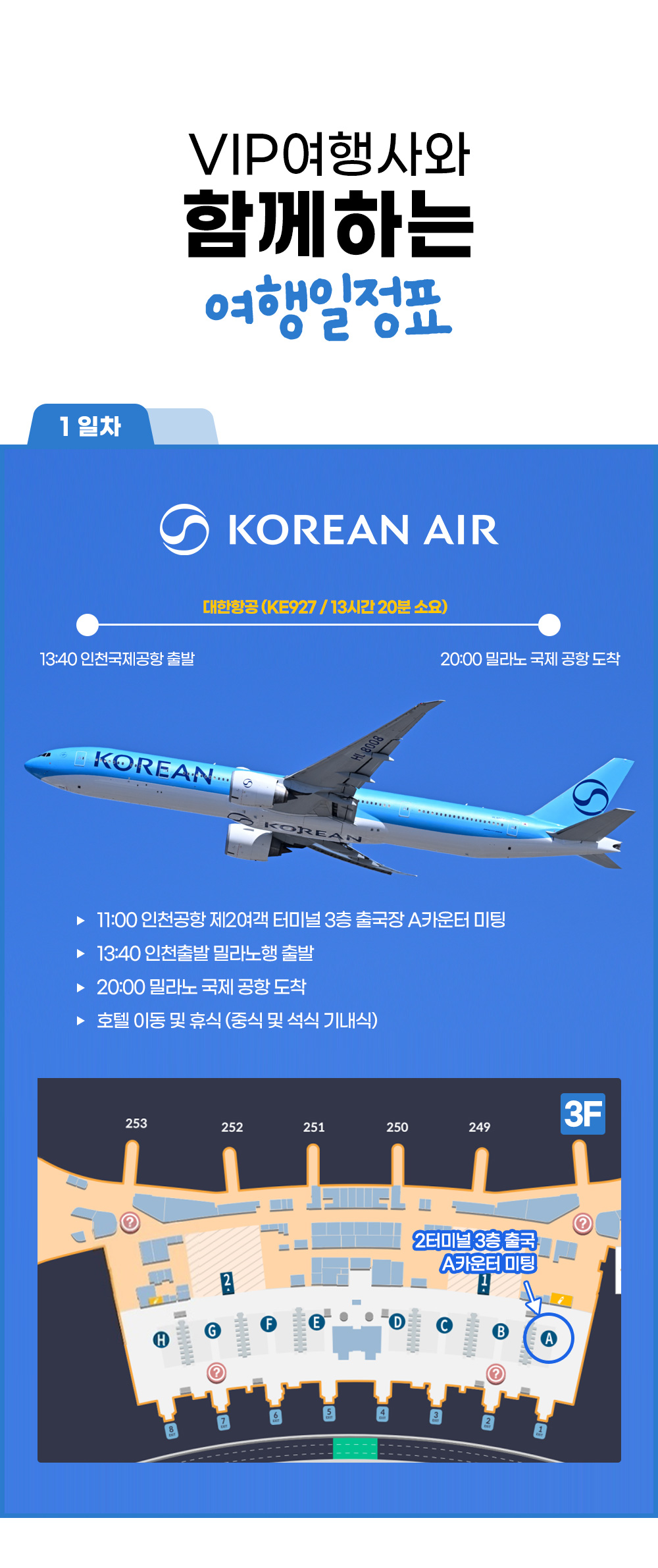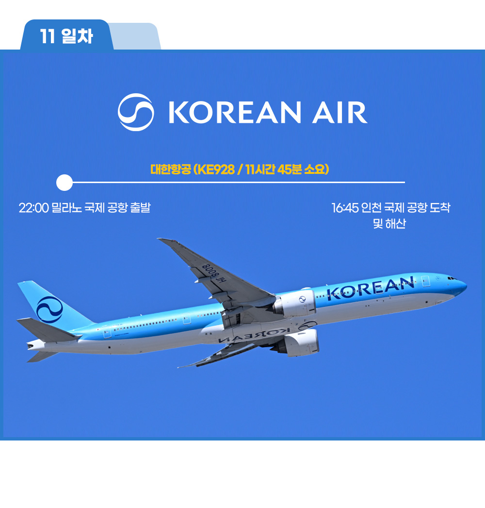 22:00 밀라노 국제공항 출발(KE928) – 약 11시간 45분 소요 |